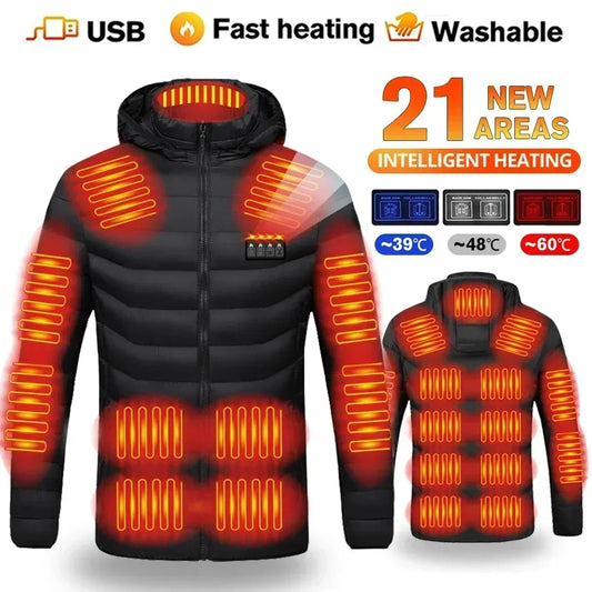 Men 21 Areas Heated Jacket USB Electric Heating Vest For women Winter Outdoor Warm Thermal Coat Parka Jacket NEW Cotton jacket