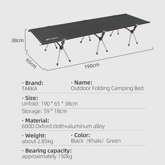 TARKA Portable Camping Cot Lightweight Collapsible Sleeping Bed Tourist Hiking Backpacking Foldable Tent Bed Outdoor Single Beds