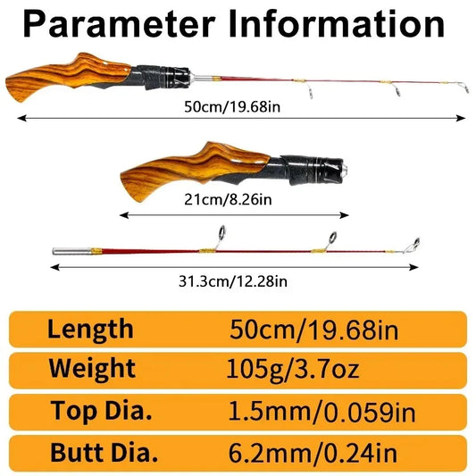 Sougayilang Ice Fishing Rod Portable Carbon Fiber River Shrimp Carp Fishing Pole 50CM Mini 2 Sections Winter Fishing Rod Pesca