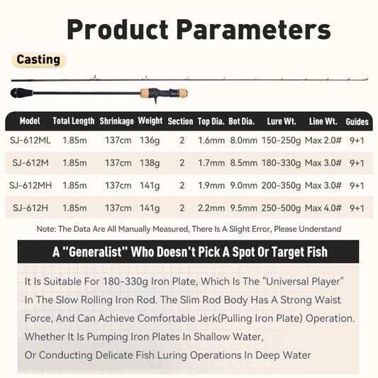 LEYDUN Rang’s SJ Slow Jigging Fishing Rods ML M MH H 1.85m Saltwater Boat Casting Rod High Carbon Sea Boat Pole light Rod